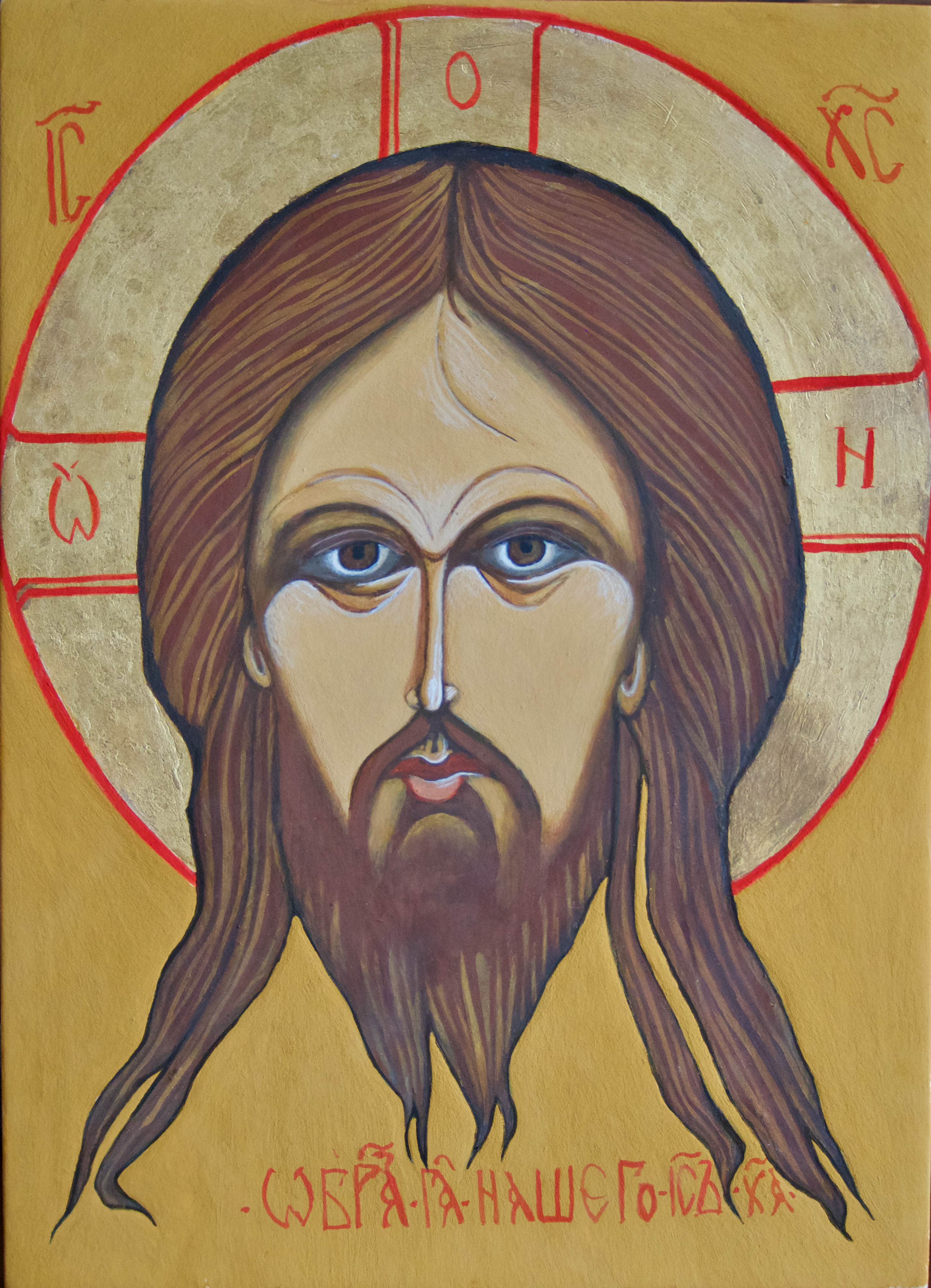 Tempera à l'œuf et feuille d'or sur bois de tilleul massif avec contrefort (bois d'icône).
