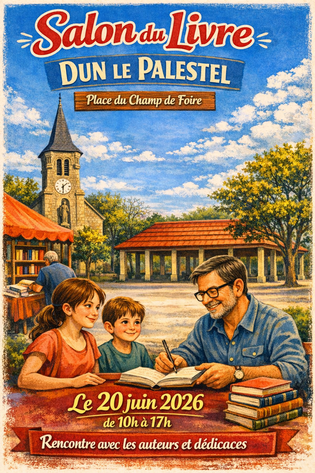 20 juinSalon du livreDun-le-Palestel (23) - sous barnum à coté de la halle - Brocante en même temps