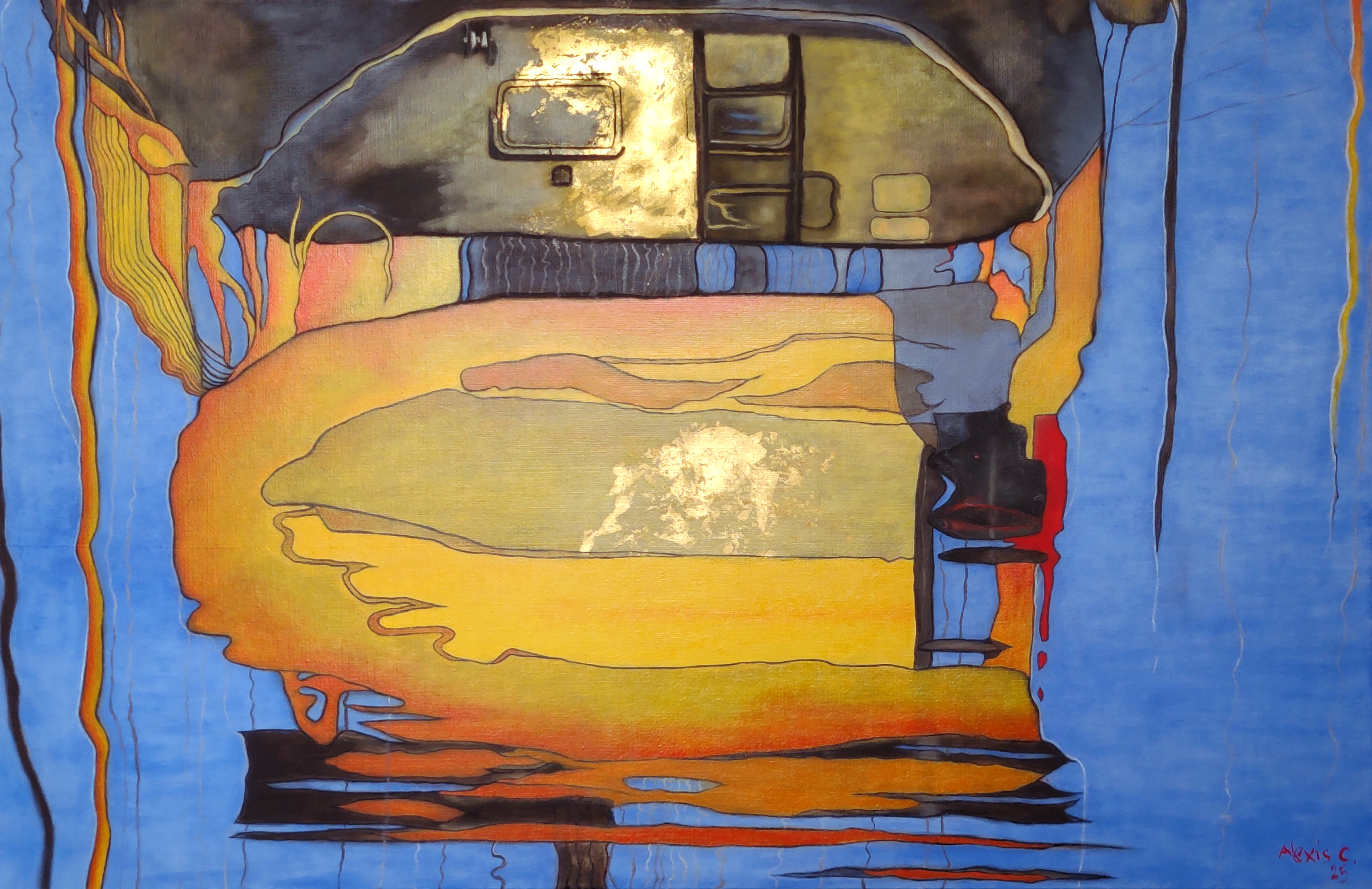 Huile et feuille d'or 18 carats sur toile de lin - Format 65 x 100 cm
