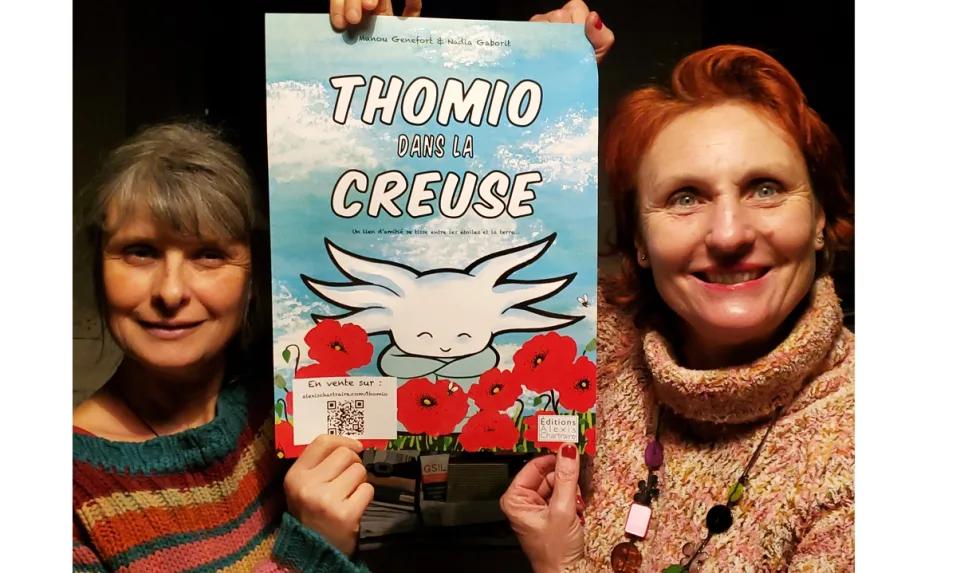 Séparées seulement de quatre kilomètres, elles ont pu mijoter durant deux ans cet ouvrage baptisé Thomio dans la Creuse, présenté comme « l’aventure épique de ce petit extraterrestre poète qui tombe amoureux de la campagne où il a atterri ».
