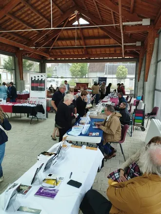 Chacun est le cadeau de l’autre et En tout bien, tout amour , deux livres autoédités par Ariane Aublé venue de La Saunière étaient à découvrir. Maryse Bouzet, qui a toujours adoré écrire depuis toute petite, présentait son dernier ouvrage, Le train de l’espoir , sur la vie des potiers de Mortroux.
