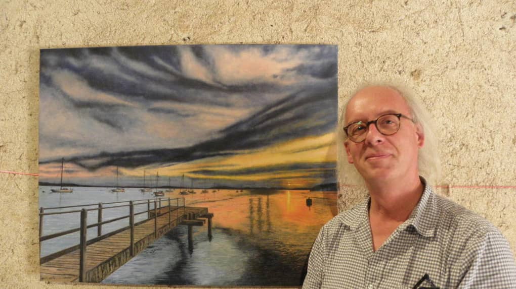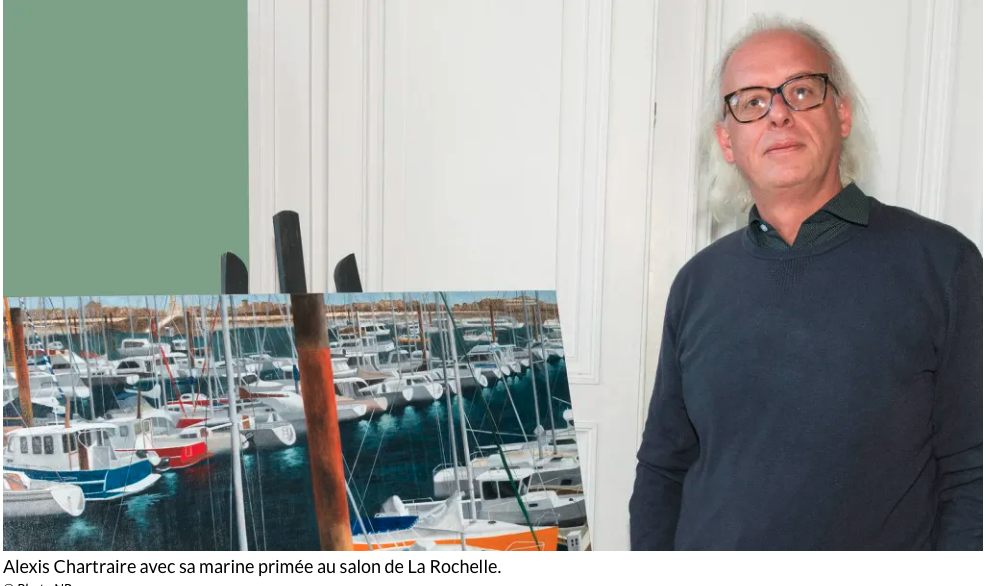 Jusqu’au 17 septembre, l’artiste Alexis Chartraire, peintre et romancier, expose au château de Chamousseau, à Queaux, les peintures qui résultent de sa recherche assidue des multiples reflets et jeux de lumière à la surface de l’eau. Informaticien de métier, il a changé radicalement d’orientation il y a une quinzaine d’années ; après une période où il s’est formé seul à l’art pictural, il est devenu professionnel en 2012. Il raconte : « Je suis inspiré par le réalisme d’Édouard Hopper, bien que je n’aime pas le terme d’hyperréaliste. Je préfère celui de rendu réaliste. De plus, les lumières et les couleurs des impressionnistes comme Claude Monet et Vincent Van Gogh m’attirent. J’aime aussi la puissance qui se dégage des œuvres de Théodore Géricault. Je suis à la recherche de reflets aquatiques inédits et de la lumière à Venise, sur la mer et l’océan, dans les rivières et les lacs. D’ailleurs, j’habite à Pouligny-Saint-Pierre, dans la Brenne, le pays aux mille étangs. Chaque peinture est consécutive à une campagne photographique dans laquelle j’accumule des instants vécus que je représente ensuite. Après une première série “ Reflets, Venise ”, je travaille actuellement une série “ Reflets, marine ” où je mélange le réalisme et l’abstrait, dans laquelle l’eau sublime la lumière dans ses reflets. Cela m’a valu plusieurs prix : en 2014 pour “ Voiliers, Bonnu, Été ” au Salon de Artisart de Châteauroux, en 2019 pour “ Le Port de La Rochelle ” au 34e Salon de La Rochelle et en 2021 le prix d’excellence de peinture marine pour “ Reflet, Marine VII ” au 35e Salon de La Rochelle. C’est en étudiant et en copiant avec liberté le fameux tableau de Théodore Géricault, le “ Radeau de la Méduse ”, que j’ai écrit un roman historique, publié en auto-édition en 2019, intitulé Cavalcade - Théodore Géricault. Ainsi, j’ai découvert le plaisir de l’écriture. Mon premier policier, Arrêt, immobilité, salut, a été publié en 2021 (éditions Lys Bleu) et cette année un deuxième polar va sortir, Les feux de la Saint-Jean (Éditions Maïa). Je souhaite continuer de front mes deux activités de romancier et de peintre : les reflets d’eau sont une inspiration illimitée. »