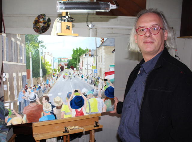 Alexis Chartraire devant son tableau, « Tour de France »